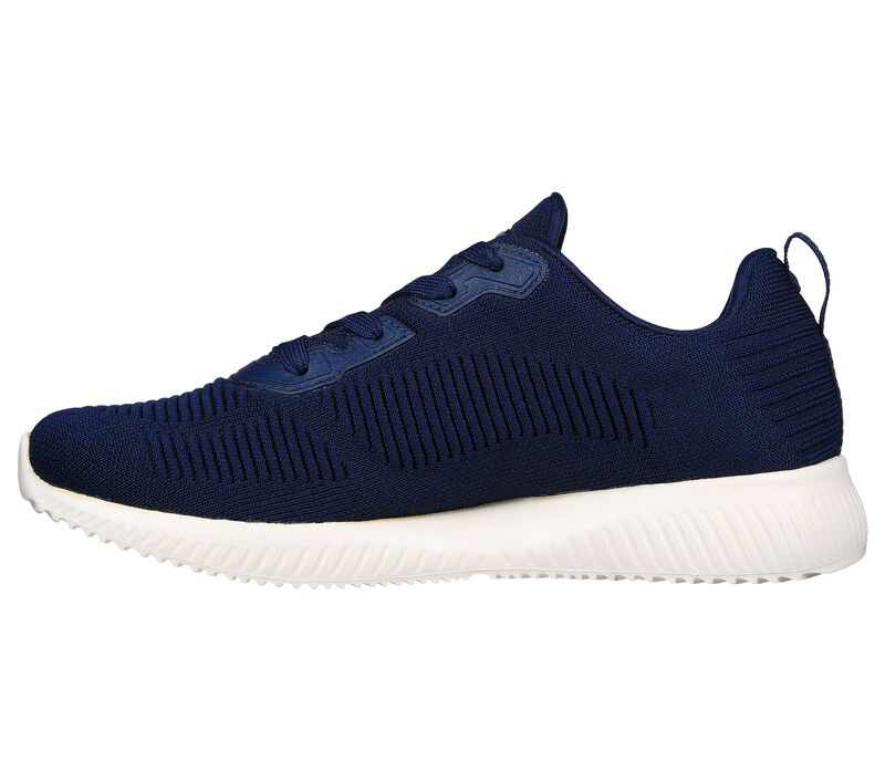Soft woven knit fabric upper in a lace-up fashion sneaker with synthetic overlays and memory foam insole.