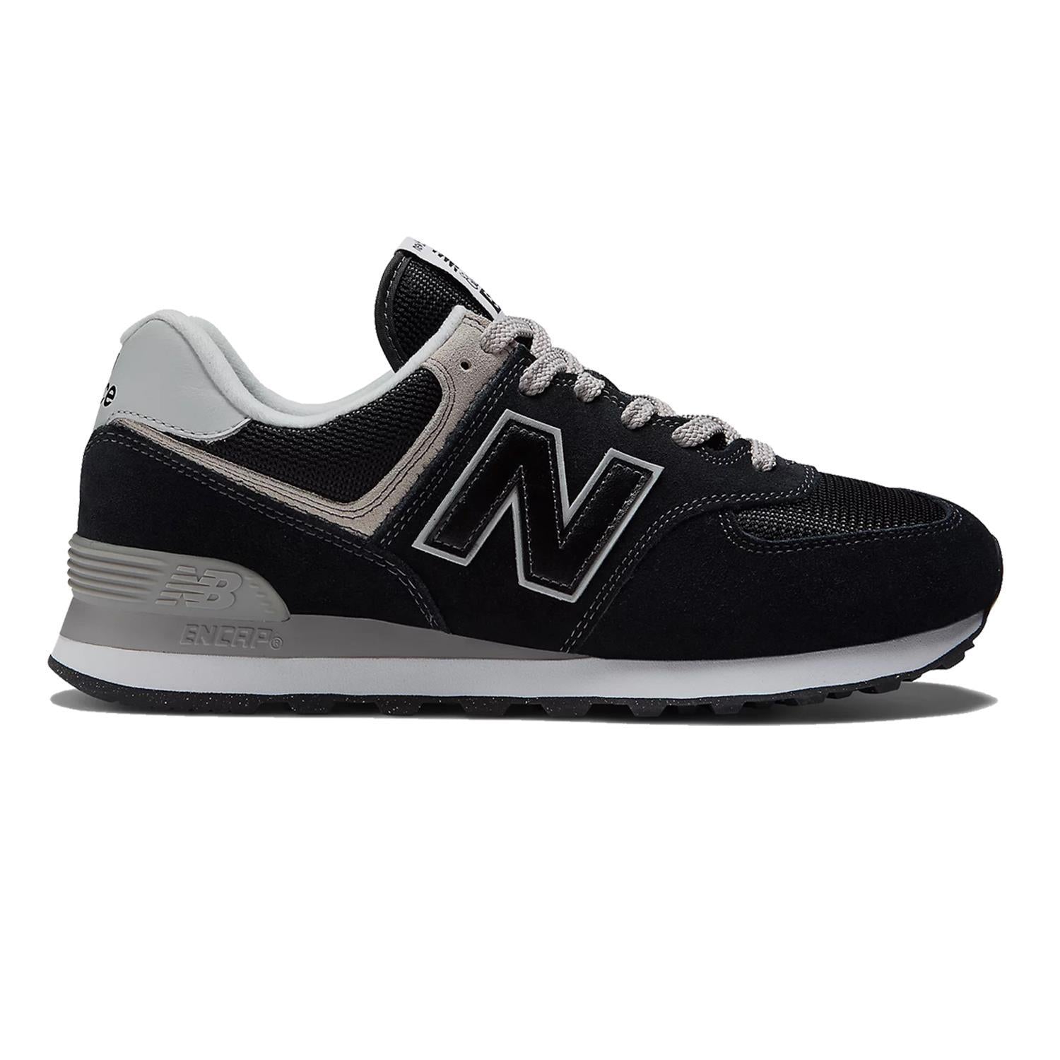 Men's Wide Fit New Balance ML574EVB Walking/Running Trainers - Exclusive - Black/White ENCAP Width 4E