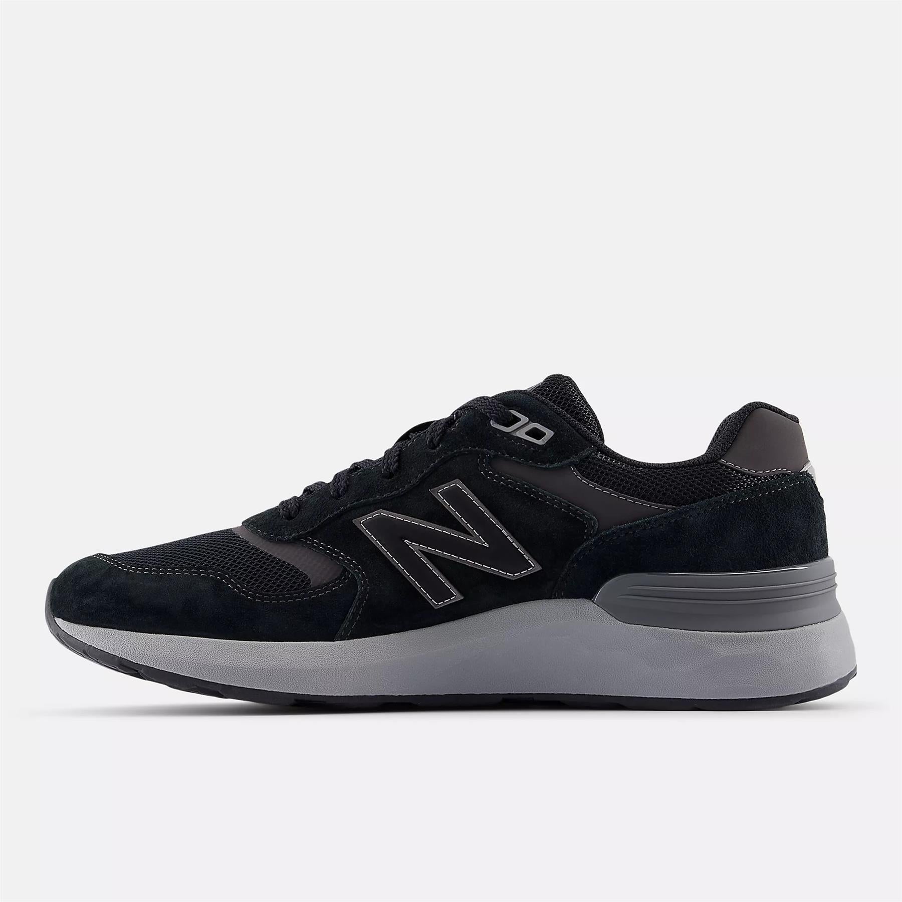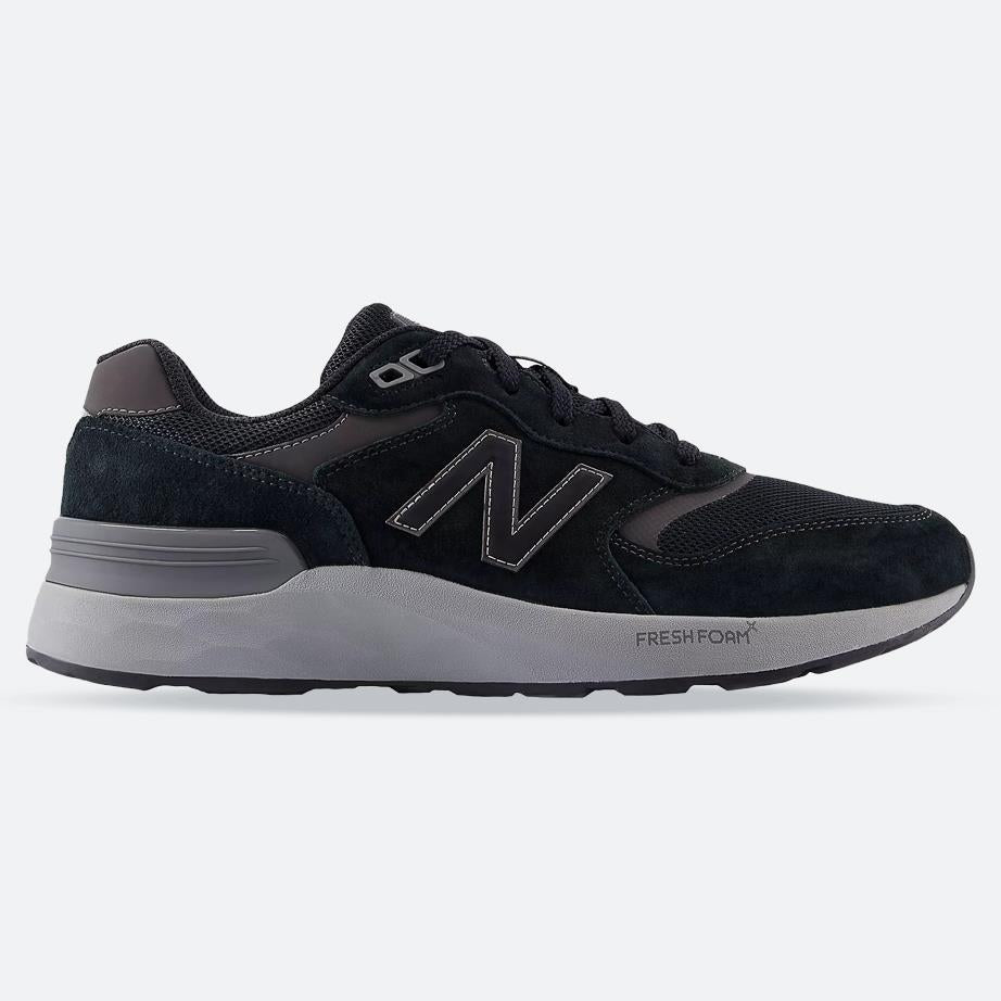 Men’s wide fit New Balance MW880B black trainers showing upper and Fresh Foam cushioning